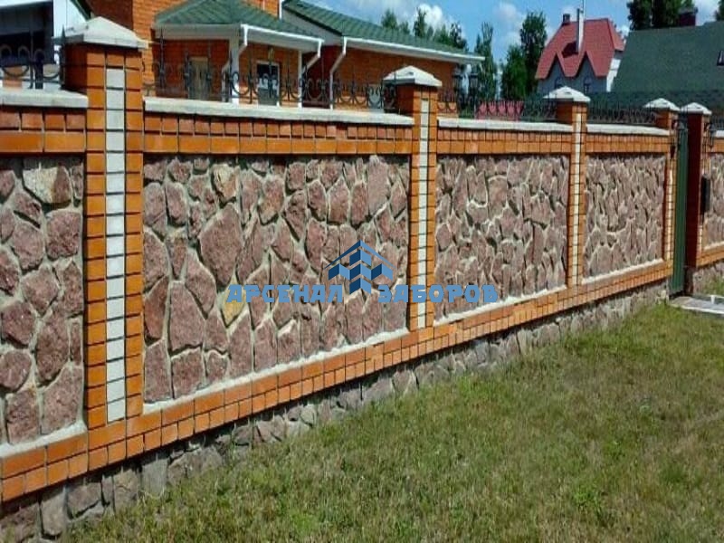 Фото работ - кирпичный забор с камнем